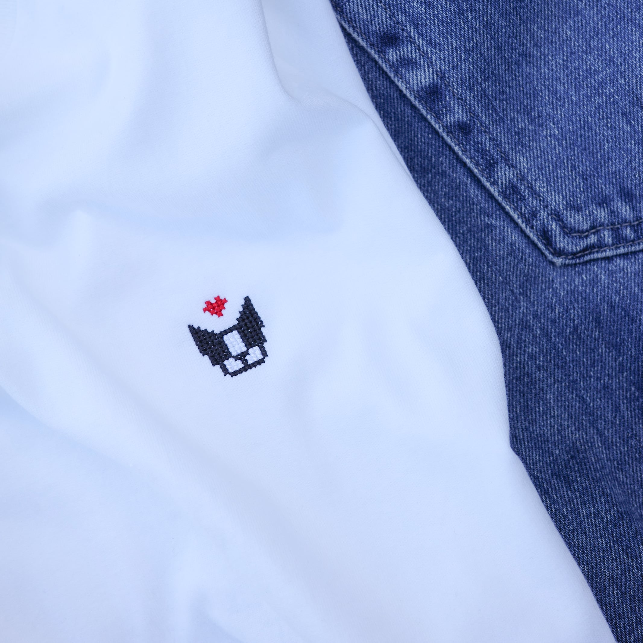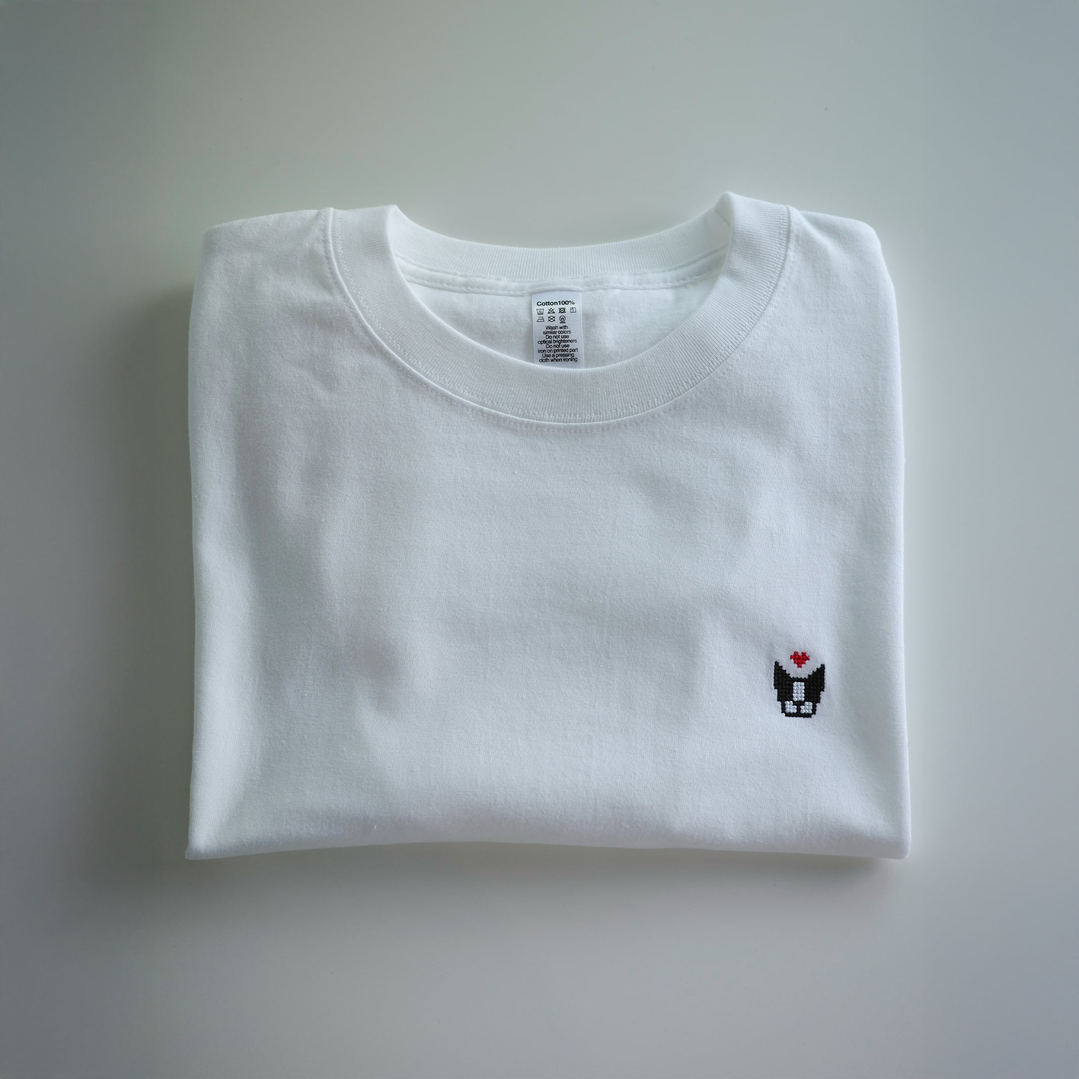 クロスステッチで仕上げたボストンテリアの刺繍が胸元にさりげなく宿る、LAGを象徴する一枚。